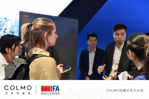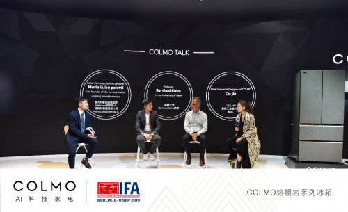 “征·索熔幔岩——COLMO熔幔岩系列冰箱全球首发暨国际新包豪斯设计跨界峰会”在IFA舞台召开,中国驻德国大使馆公使衔参赞王卫东、意大利驻德国大使馆一级参赞Francesco Leone、IFA全球公关部经理 Nicole Vonderropp、意大利著名服装品牌Melampo创始人&国际知名服装设计师Maria Luisa poletti、柏林大学知名学者&国际合作专家Dr.berhold .Kuhn、DLG德国农业协会食品部主任Schiller simone等国际权威及名流嘉宾莅临现场。在众多国际嘉宾的见证下,这一“顶尖科技与前沿艺术的融合革命”的COLMO熔幔岩系列冰箱揭开神秘面纱。活动现场同步公布512升法式四门冰箱及631升对开门冰箱全球首发价分别为16,999元及17,999元,同步开启全球预售。