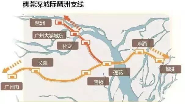 据了解,穗莞深城轨琶洲支线南起莲花站与佛莞城际相通,中途设置化龙、大学城东等站点,北至琶洲站连接广佛环线,全长17.7公里。