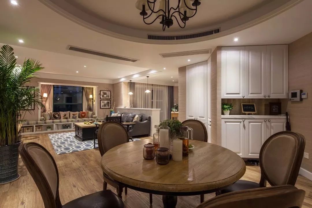 今天分享的是一套建筑面积203平的乡村美式风四居室案例,房子本身的格局是不太规则的,但在设计师的巧妙设计之下,把每个空间给划分得非常的棒,再加上乡村美式风独特的韵味,打造出了这样一个沉稳大气又自然质朴的家。
