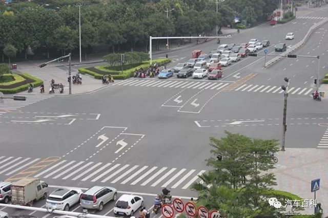 待转区长什么样大家也要认识?左转车道继续向前延伸,但车道线是用虚线画的,里面用汉字写的左转待转区,或者没有汉字但画了一个左转的箭头,并且在待转区尽头有停止线,排在第一的车要在停止线之前停下等待。前几天还有人问到了待转区尽头停下车会不会看不见信号灯了,左转变绿灯了能知道吗?答案是能看见,就算在路边都能看见信号灯,在路中央当然也会看到。有一种是左转导向车道,与待转区类似,要注意导向车道是引导车辆行进方向的,不当成待转区进入了。导向车道没有写待转区,也没有画停止线,还是比较容易分辨的。