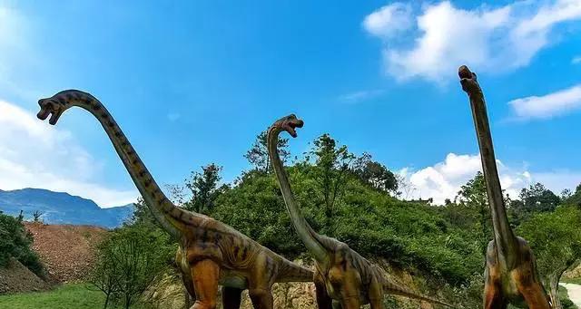 山谷茂密的丛林中,超大只的恐龙雕像散步在园区各处。每一只造型不一,有的憨态可掬,有的威武无比,每一只逼真程度都很高。除了造型逼真,这里的恐龙有些眼睛,嘴巴,身体还会动,有的还能吼叫会咆哮。进入恐龙谷内,分分钟有穿越到侏罗纪时期的感觉。