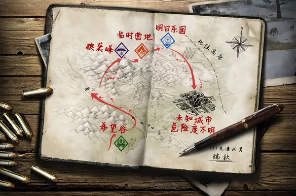今日,明日之后项目经理阿弗公布的这份手绘探索图,却指向了更遥远和充满未知危险的北陆城市……