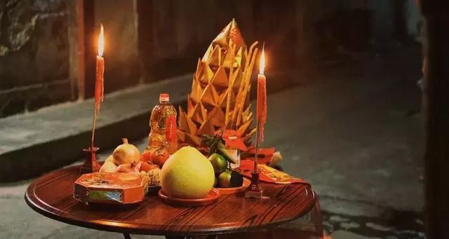 在院子里支起一张大圆桌,密密麻麻摆满一桌吃食,月饼、石榴、龙眼、炒田螺、花生和酒,其中柚子最是抢眼,上头还封着红纸。