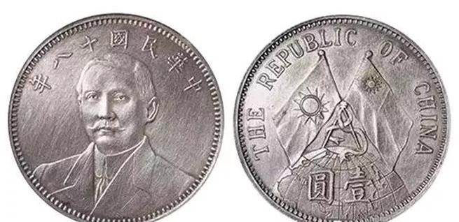 除了以上几种,还有非常特殊的一枚“中华民国十八年”银元,这种银元的背面是半圈的地球,上面插了两枚旗帜,刻有“壹圆”两个字,这种银元能够在许多银元中脱颖而出,除了精美的制作和构图,它还表达了爱国主义情怀!