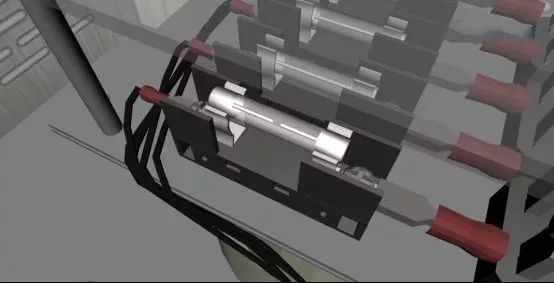 按下开关,让电梯下降,当电梯出现故障持续下行时,限位开关和极限开关向内滑动。