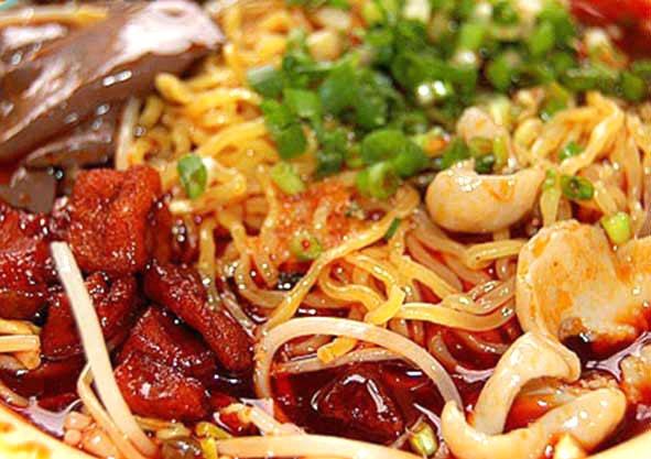 用肥肠和血旺分别制成肠臊和旺臊,再用猪五花肉制成脆臊,这“三臊”缺一,都不算正宗的肠旺面