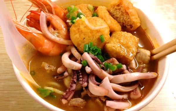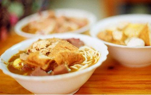 厦门的沙茶面便是以沙茶酱作汤头,用众多新鲜的海鲜肉食、豆腐丸子等同面条一起烹饪而成,咋看有点像冬阴功汤,红彤香浓,闻着味都胃口大开