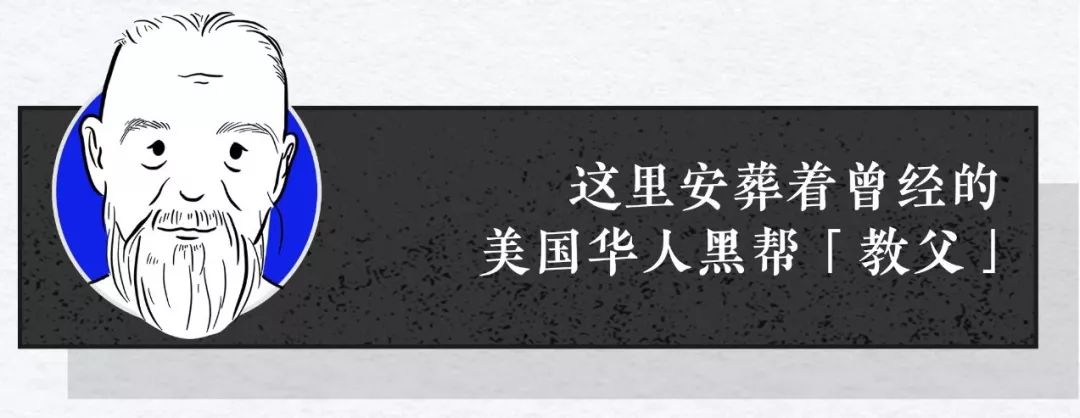 司徒美堂 的墓地盘比其他人大了好几倍,他在1868年出生于广东,12岁就去了美国打工,后来成为「洪门」老大——就是《古惑仔》里那个洪门。