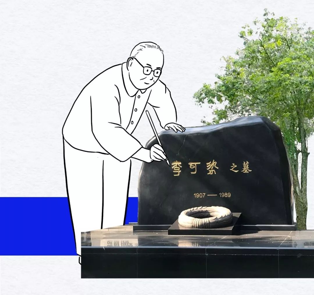 画家 李可染 的墓碑,是一块光滑的墨色砚石。