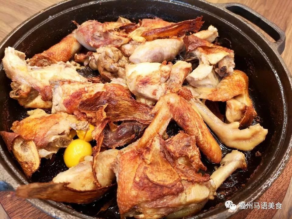被评为2013年“中国名菜”,原生态无污染的山野放养土鸡喂足五个月以上,鸡肉紧实,贴着姜片的鸡皮在高温铁锅热力下散发着迷人香味,这个时候是不会计较什么鸡皮热量的,美食的魅力总是我们保持身材的拦路石。