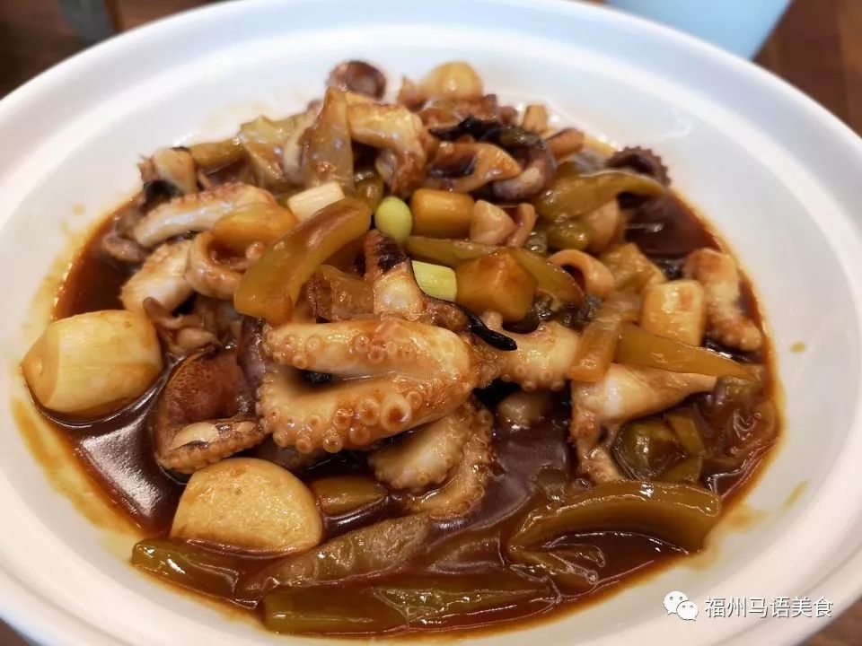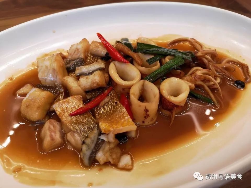 说闽南菜一定离不开酱油水,在闽南,酱油水可以煮一切海鲜,东山灯光诱捕的小管是福建知名的海鲜,再加黄鱼,那是鲜上加鲜。