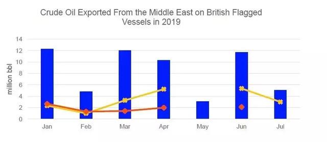 2018年,超过11,000艘石油和液化天然气油轮越过海峡,而今年上半年,Refinitiv船舶追踪数据显示,约有5250艘船舶通过了海峡。在2018年的过境中,估计有5,010艘船被确定为满载的超大型原油运输船(VLCC)。由于伊朗石油出口量下降,导致海湾地区的出口量在2019年略有放缓,6月份同比下降180万桶/日,至每日不到50万桶。