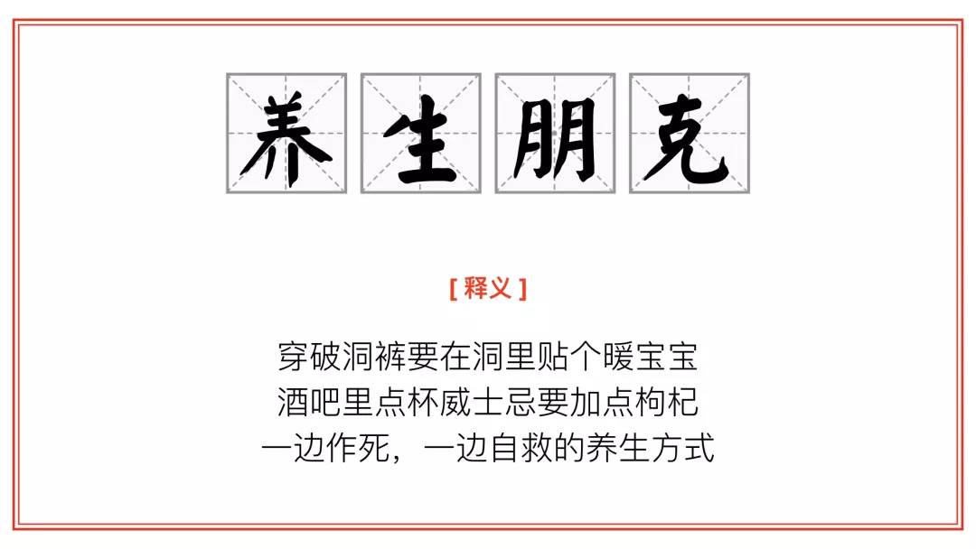 对于八九零后的朋克养生党们而言,“熬夜敷面膜,啤酒加枸杞,蹦迪戴护膝,炸鸡配红茶”是标准而常规的操作。哪怕面对繁忙工作与生活压力已日渐头秃,而且天天三餐外卖盒饭熬夜不动加班,也总有种自己能凭一口仙气吊着捱多一阵的错觉。