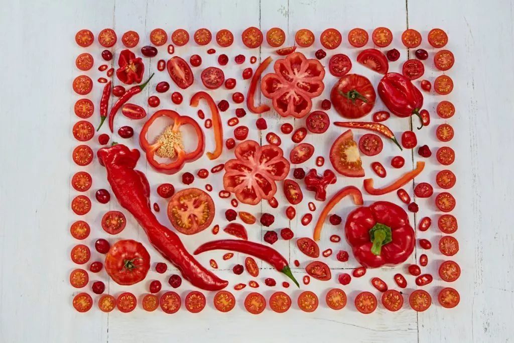 红色食物中,红色蔬果含有丰富的类胡萝卜素、西红柿红素等营养物质;而红肉则主要是富含血红素铁,较植物性食物中的非血红素铁易吸收。红色食物具有增强人体组织中巨噬细胞的功能,巨噬细胞是感冒等致病生物的克星,而类胡萝卜素转化为维生素A,也可以发挥护卫呼吸道粘膜的能力。西红柿红素有极强的抗氧化作用,可以延缓身体退化速度,预防衰老。
