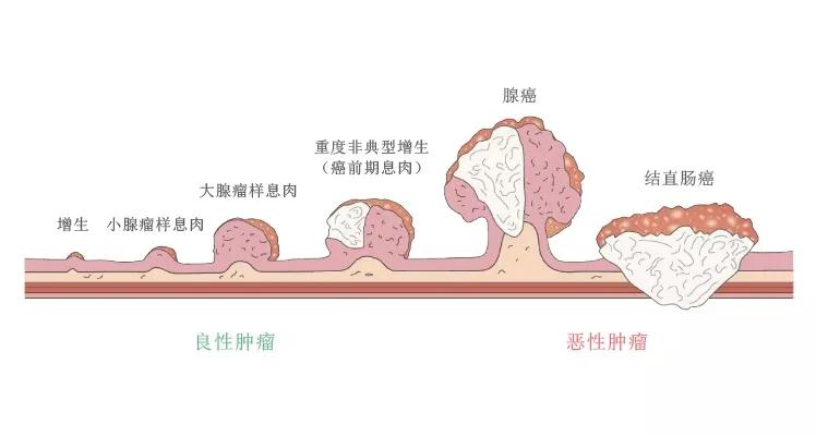 几乎所有结直肠癌病例都是由息肉发展而来。息肉从结肠内壁开始增长,且多发于结肠左侧。通过结肠镜检查发现并切除息肉可降低结直肠癌的患病风险。