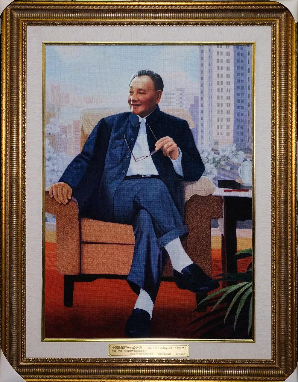 值得一提的是,这幅绒绣像也是继2004年5月5日,恒源祥为邓小平同志诞辰100周年绣制绒绣像后,再次创作并赠送绣像。当时的邓小平同志绒绣像长92厘米、宽70厘米,由邓小平长女邓林启绣第一针。