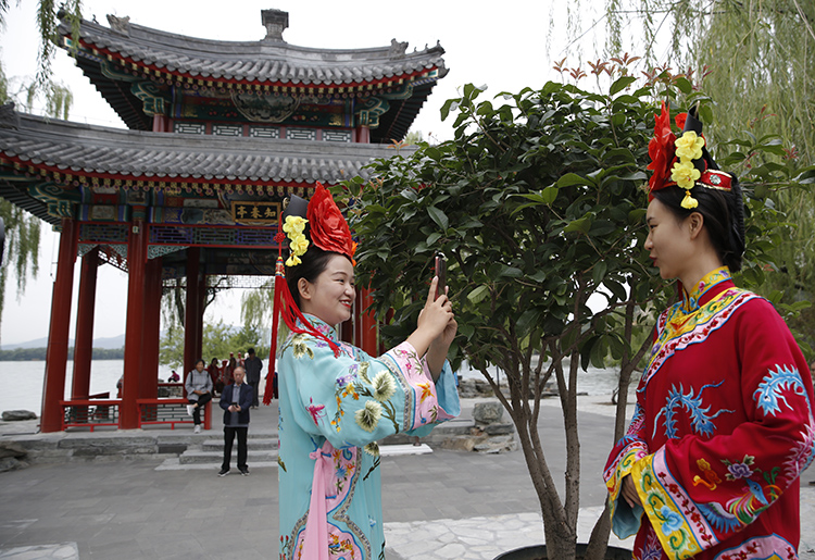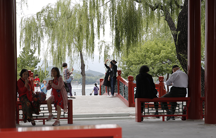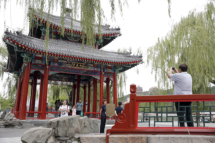 9月12日,颐和园知春亭修缮完工后对游客开放。