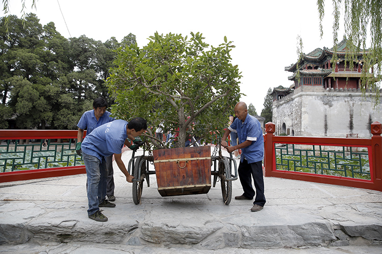 记者了解到,颐和园的桂花盆栽常年在颐和园延庆花卉研究所养护,其中72盆古桂堪称颐和园的自然文化遗存,曾经散落于清宫廷王府内,几经周折重新回到“故居”颐和园。经过前后五代园艺技师的精心养护,如今园内桂花盆栽数量已超过1000盆,每年通过人工花期调控,让桂花得以中秋节和国庆节期间盛开。