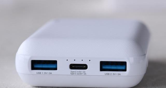 在接口方面,京东京造的这两款充电宝是比较接近的,都是放置于充电宝的顶部。稍有不同的地方就是J13P(小的)的LED指示灯位于顶部,而J21P(大的)则位于充电宝正面,这种差异其实只是大同小异,所以也不存在什么问题。从接口来看,J13P(小的)在接口处标有很明显的文字信息,左右两个输出口分别是“USB 1.5V=3A”、“USB 2.5V=3A”,中间的则是“Type-C in 5V=2A、Type-C out 5V=3A”的双向充电口。而在J21P(大的)上则只有“闪电”符号作为标识,左侧为一个右侧为两个。