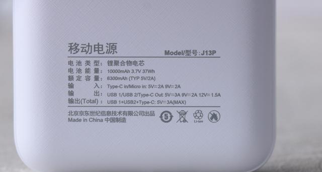 这两款充电宝的表面都采用了斜点格纹的设计,这样就增加了表面摩擦力,在日常使用中也不会掉落。J13P(小的)是允许携带登机的,这也让出行更加方便。重量为189g,也是相当轻便的了。