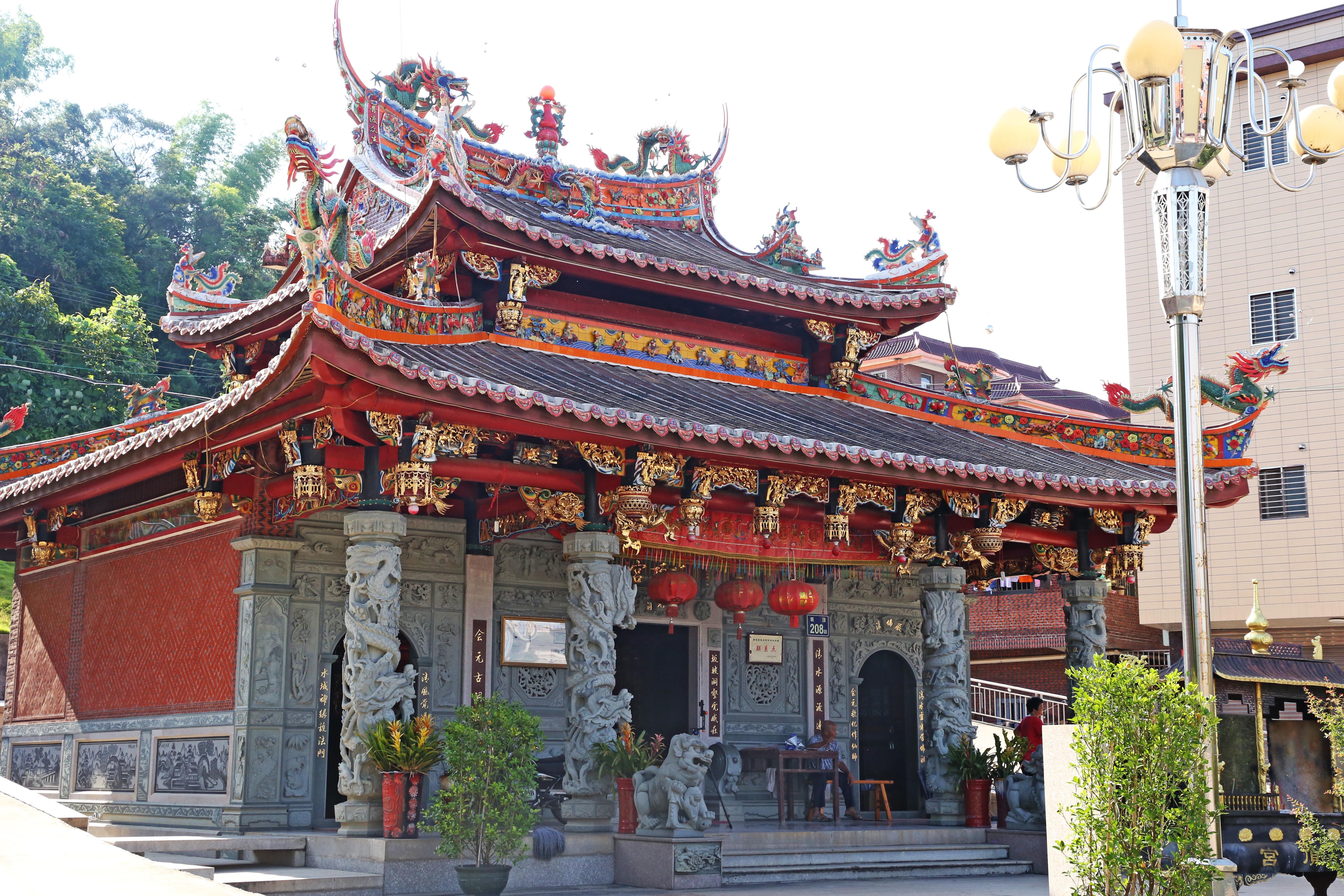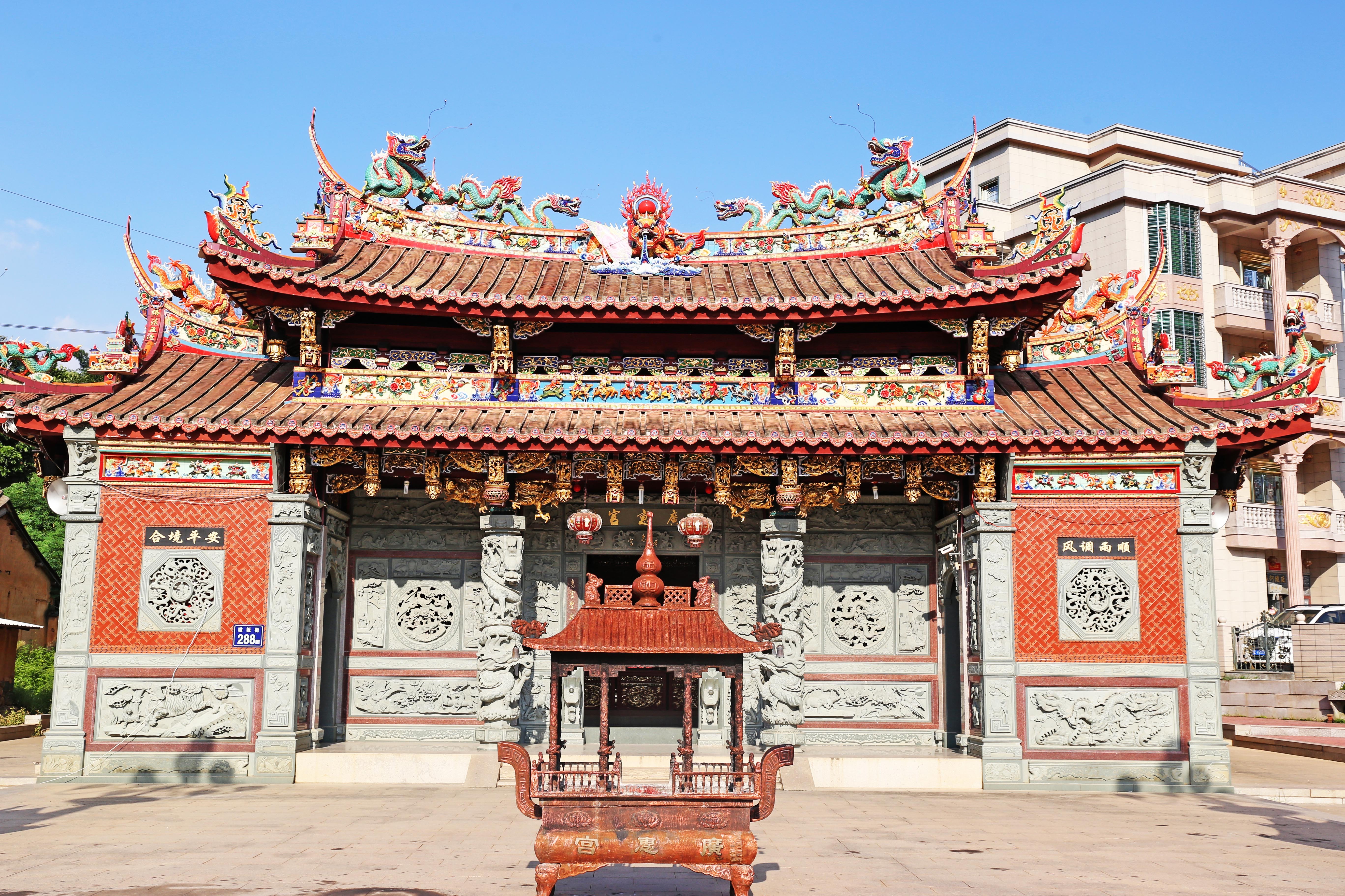 广惠宫﹑坂顶宫周边有戏台、园林景观、健身器材、休闲娱乐等配套设施。