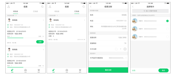 除此之外,畜牧局工作人员使用畜牧局APP可进行疫苗注射管理、检疫管理,将疫苗注射落到实处,促进完善防疫体系的建设,最终帮助消费端获得更优质健康的产品。