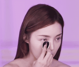 第一步:用遮瑕和定妆粉饼为眼周进行遮盖和打底。