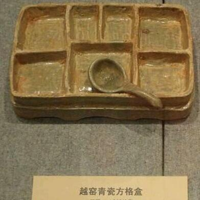 于1984年出土于三国东吴大将朱然的墓中。因当时的一场暴雨,冲出了这座古墓,当地文物部门接到报告后,立马组织考古专家赶到现场,进行抢救性地发掘。墓中出土了140多件文物,大多都是精美漆器,其中的越窑青瓷方格盒,让专家们目瞪口呆。不是因为该方格盒的价值,而是由于它的形状太像现在食堂用的餐具,简直是一模一样。不同的是,越窑青瓷方格盒中的每个格子中,都刻有一个圣兽。有人戏称,该方格盒是三国“白领”的餐具,那时的“白领”思想真够前卫的。