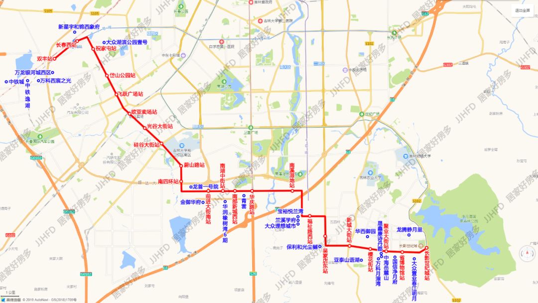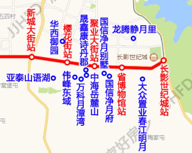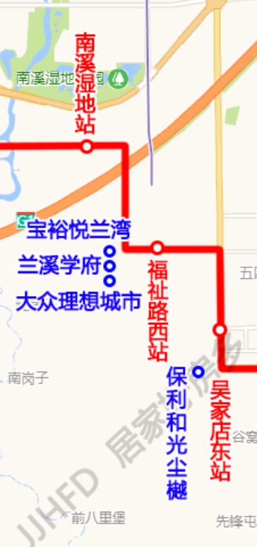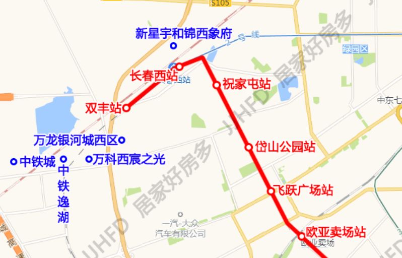 站点:双丰站-长春西站-祝家屯-岱山公园-飞跃广场-欧亚卖场-光谷大街-硅谷广场-蔚山路-南四环-前进大街南-南湖中街-南部新城西-华庆路-南溪湿地-福祉路西-吴家店东-新城大街-樱花街-聚业大街-省博物馆-长影世纪城