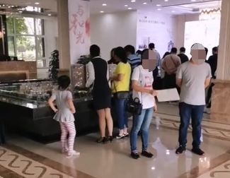 看看这排队交钱的人!