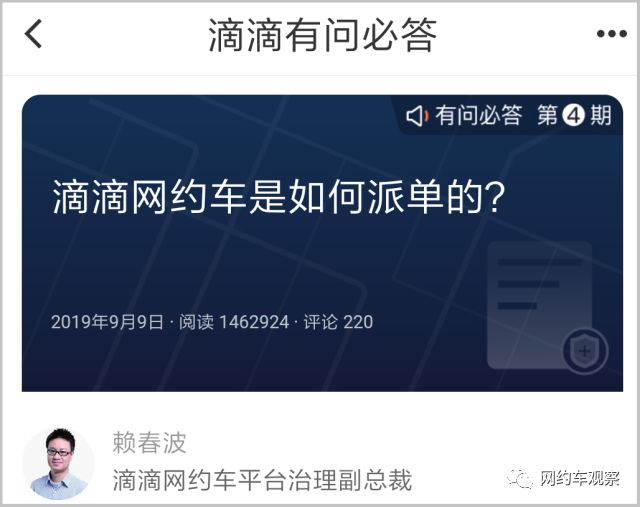 近日,滴滴发起了第四期有问必答,邀请滴滴网约车平台治理副总裁赖春波,再次详细解答了滴滴是如何派单的,对乘客和司机关心的话题进行了重点回应。对于乘客朋友质疑为什么不派最近的司机优先来接,赖春波还是以滴滴的“全局最优”原则进行说明,简单理解就是让同一时段乘客的总等待时间最短,而不是照顾最近的乘客。此外,很多女乘客晚上比男乘客派单更慢,是因为滴滴在正常派单的基础上,增加了“安全派单”步骤,通过大数据分析,力求为女乘客匹配更适合一起出行的滴滴司机。