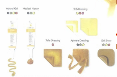 特性:片状及无定型凝胶、 80%-90%水和甘油组成 、半密闭性、 为伤口床提供冷却和镇静效果
