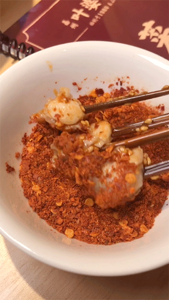 如果你觉得味道不够辣,还能来上1份干辣椒碟。裹上自制的辣椒面,香辣可口。