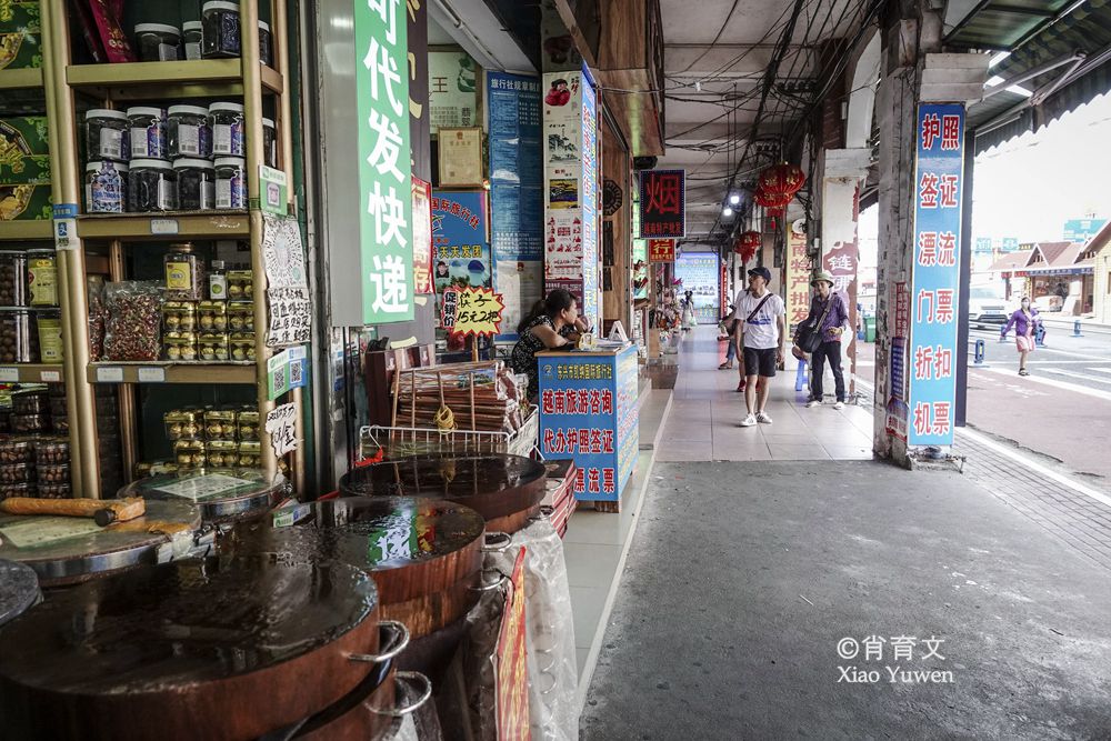 每天早晨,往来对方的两国商贩以及大批货物,依然络绎不绝、源源不断。在口岸边的商业街上可以买到来自越南的水果以及一些特色产品。