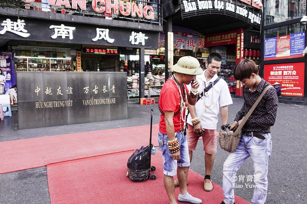 口岸市场到处是卖手串的越南小贩。这些手串贩子可了不得,刚问了一句看看手串,就遭到他们的“围攻”,大有不买不行的意思,跟在你身后寸步不离,死缠硬磨,直到你反感也无奈。