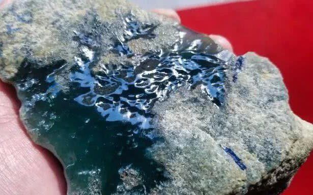 青蛙皮:颜色青灰或淡绿,表皮细腻而显薄,没有雾层,切割后,多见水短,含翠色者比较少,它多见出产在后会卡场口。