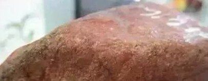 红沙皮:色似杨梅红,也称杨梅皮。出产这种沙壳的场口比较多,有摆上桥、香公、大马坎、穷瓢、马那、摩哥地等,中等石种,多见牛血雾,一般为豆底。若是壳上出现褐色的槟榔水锈,其色就很不好。