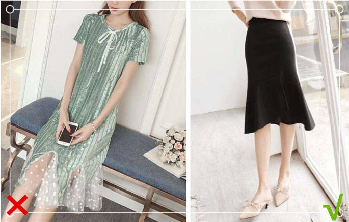 衣服的颜色也十分重要,对于矮个子的女生来说,平常最好别选择过于花哨的颜色,否则很容易给人凌乱的感觉,更容易突出你的缺陷来。矮个子的女生选择鱼尾裙时,可多选择深色系,不仅显瘦的同时还能拉长你的身形让你看起来更显高哦。矮个子的女生如果选择鱼尾半身裙,建议多选择黑色系哦,不仅百搭并且更修饰身材。