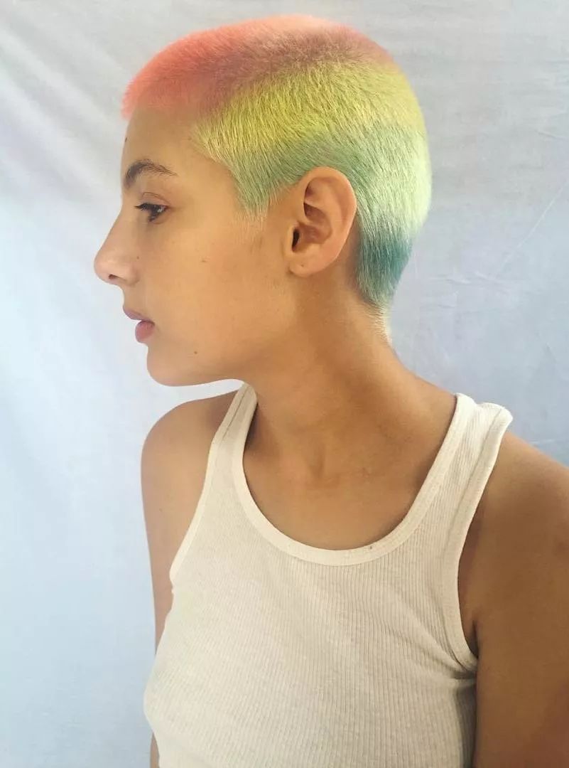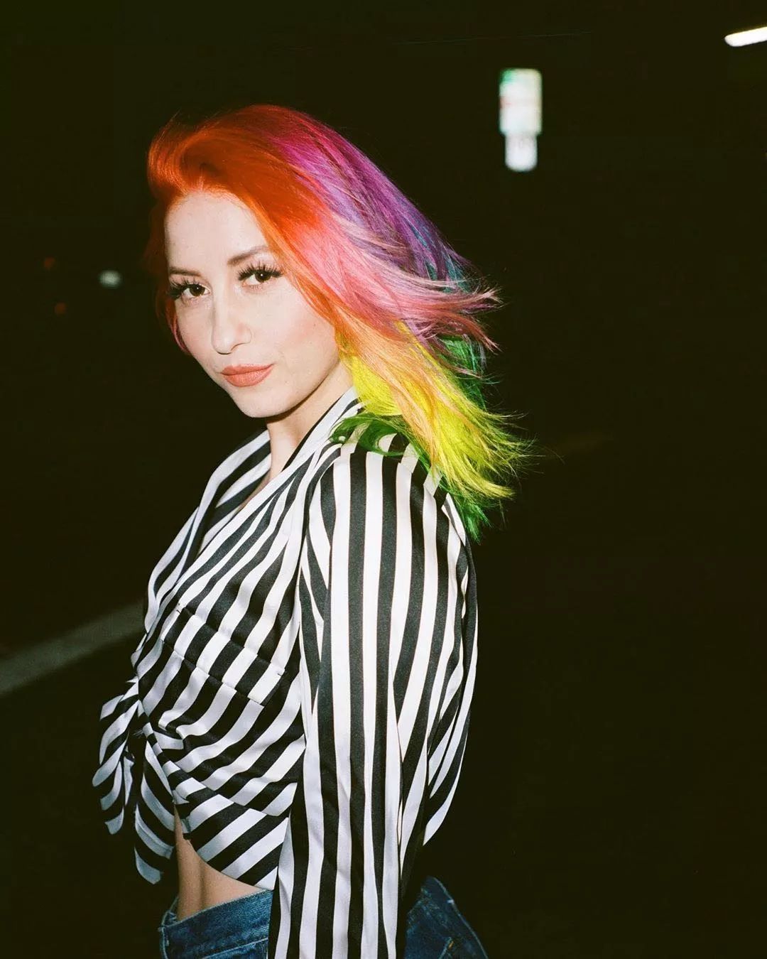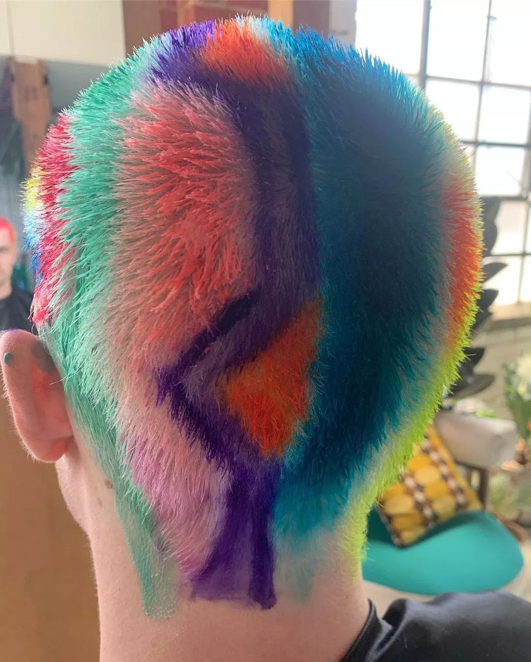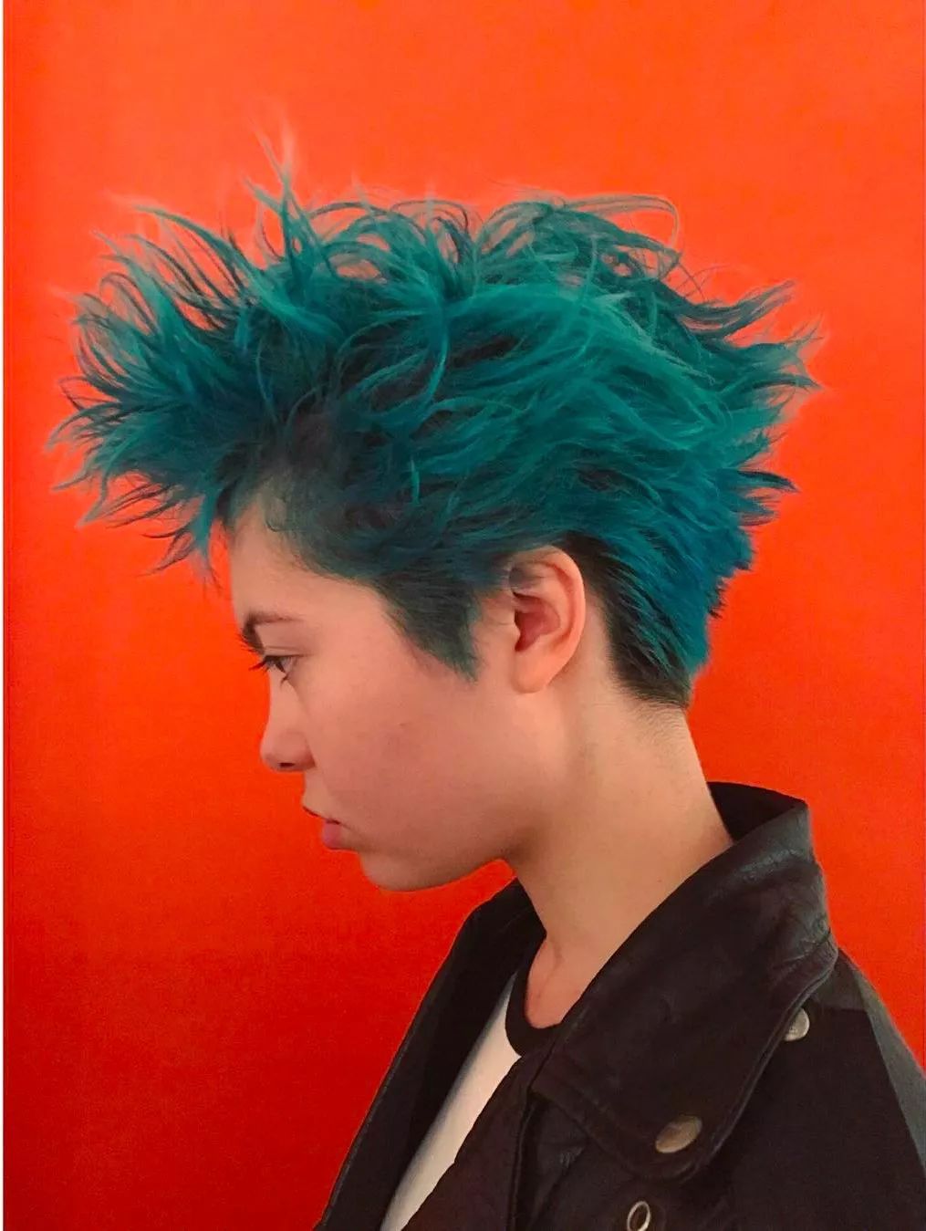 AKI为Maya打造的“彩虹头”和“豹纹头”