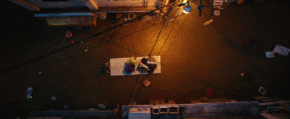 《寄生虫》中的雨灾,整条街道变成了河流。