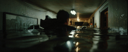 居住在地下室的人们,浑身湿透,半身浸入污水中,全力寻找着高地,最终曲着腿,蜷缩在马桶上。