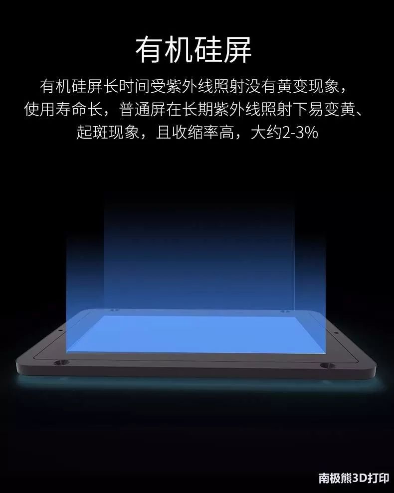在充斥着二手屏的LCD屏幕市场下,我们坚决采用工控行业5.8英寸全新透光固化屏,透光率更高,能耐长时间的紫外线照射,工业控制标准,长时间打印不发黄,不起斑,并能承受紫外灯发出的持续高温。