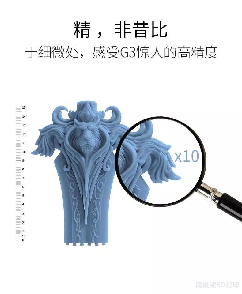 问:现在3D打印机挺多的,同精度的价格差不多甚至价格更低的,G3有什么特别的优势吗?