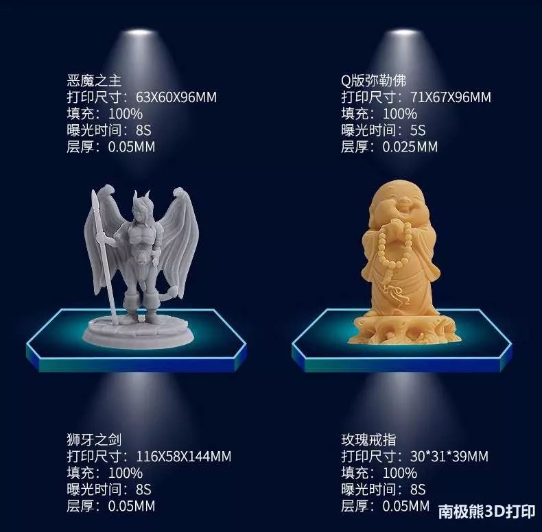 答:底层曝光时间30-40S,层固化6S。最小打印层厚推荐0.05mm。
