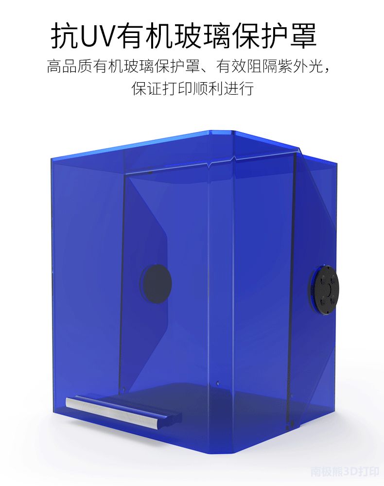 高品质有机玻璃保护罩、有效阻隔紫外光,保证打印顺利进行