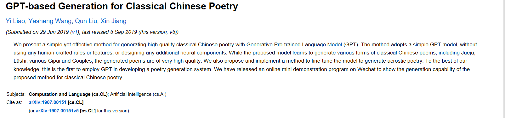 华为这个作诗AI使用的,是OpenAI提出的预训练自然语言模型(Generative Pre-trained Language Model),简称GPT。今年6月,华为诺亚方舟实验室就发表了一篇使用GPT模型创造中国古诗的论文,这个“乐府”AI的实现原理就来自这篇论文。