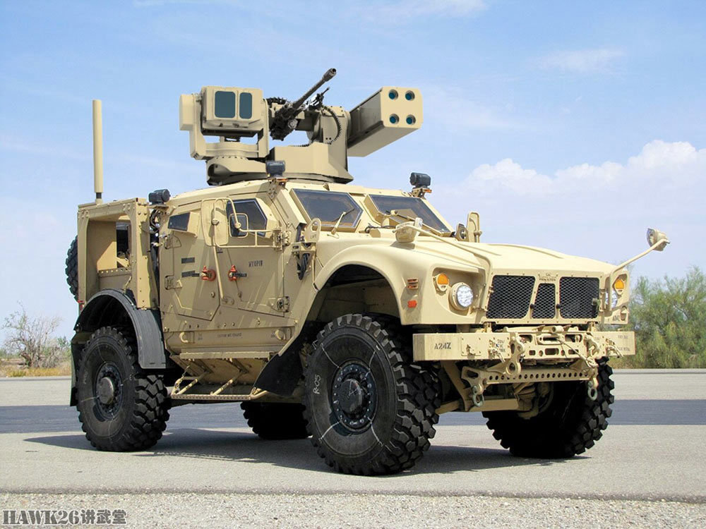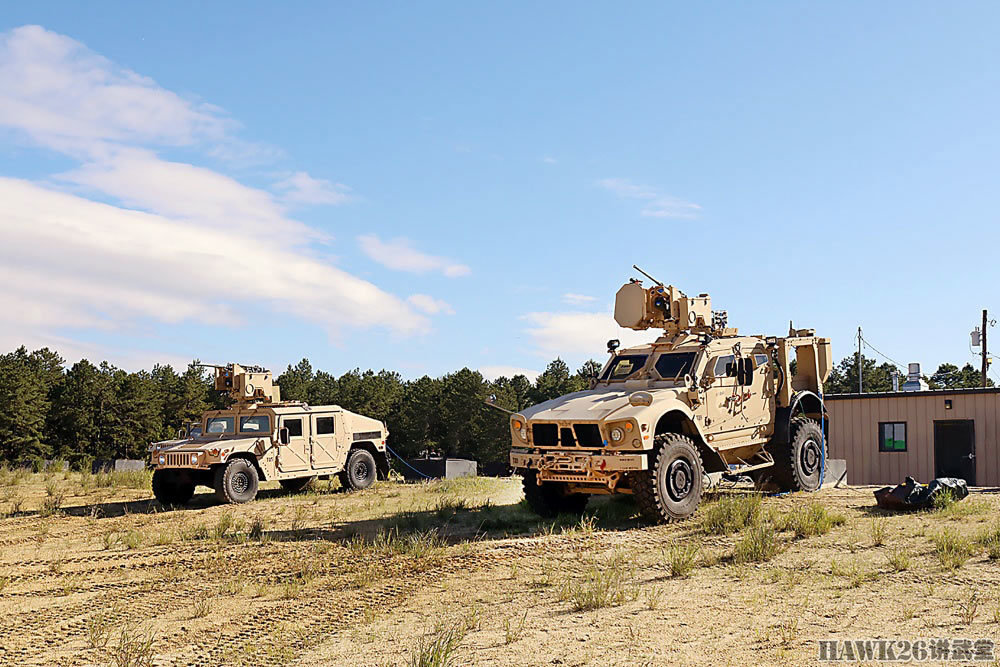 据报道,6月份的测试中,BLADE系统可能控制一挺机枪,成功击落了小型无人机。美军官方表示,BLADE系统的最后测试将于12月进行。这是美军公开的测试照片,左侧为安装了普通M153 CROWS II通用遥控武器站的悍马装甲车,右侧为安装了BLAD系统的改进型M153 CROWS II通用遥控武器站的M-ATV防地雷反伏击车(MRAP)。