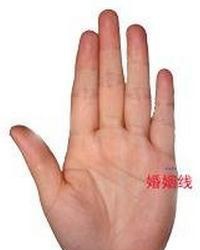 婚姻线——在小指下的掌边,介于小指和感情纹之间,有的人只有一条,有的则有数条纹。