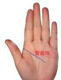 智慧线——即脑纹。是掌相中最重要的一纹,中国手相中此纹代表自己,又称人纹。起点与生命线同,向小指方向走,至无名指与小指指缝间停最好,太短不够聪明,太长则精明过度,亦不好。