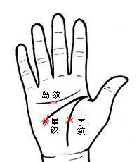 太阳纹有岛纹或像十字形,都是破坏太阳纹,代表声望或金钱的损失。